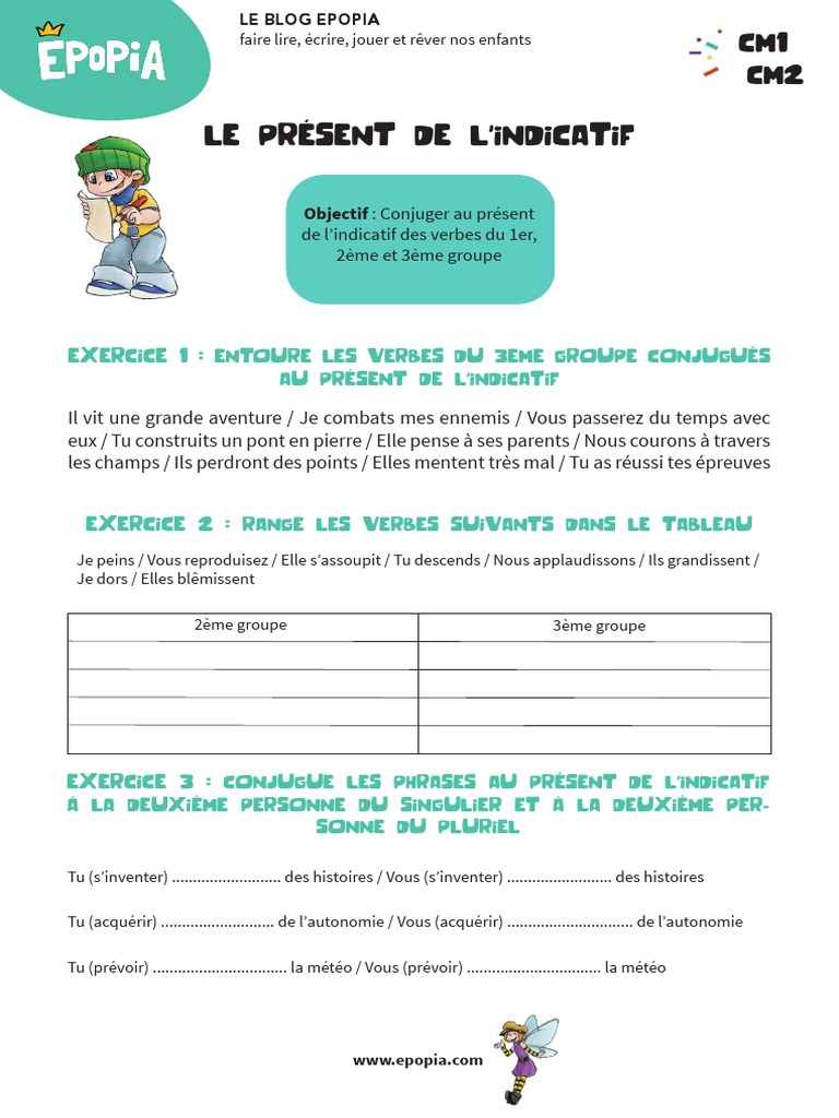 Exercice De Conjugaison Cm1 / Une Evaluation De Conjugaison Sur Le Present De L Indicatif Cm1 Ma Maitresse De Cm1 Cm2 - 52 fiches exercices de conjugaison cm1;